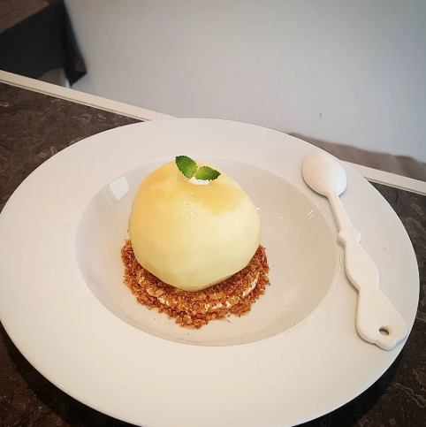 - 꿀을 살짝 두르고, 피스타치오 다진 것과 민트잎을 토핑합니다.